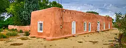 The Barela–Bledsoe House is a historic house in the North Valley of Albuquerque, New Mexico. It was built around 1870 by Juan Estevan Barela (1842–1886), a prosperous farmer and merchant. At the time of his death, he owned over 100 acres (0.40 km2) of land and 13,000 sheep. The house was inherited by his widow Abundia García de Barela (c. 1849–1943),[3] who owned the property until her death.[4] In the twentieth century, it was the residence of Robert Dietz III (c. 1915–1991), whose previous home is also a listed historic property.[5] The Barela–Bledsoe House was listed on the New Mexico State Register of Cultural Properties in 1976[2] and the National Register of Historic Places in 1979.[1]