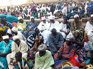 The Bariba people, self designation Baatonu (plural Baatombu), are the principal inhabitants of Borgou and Alibori Departments, Benin, and cofounders of the Borgu kingdom of what is now northeast Benin and west-central Nigeria. In Nigeria, they are found spread between western Kwara State and the Borgu section of Niger State. There are perhaps a million Bariba, 70% of them in Benin, where they are the fourth largest ethnic group and comprise approximately 1/11 of the population (9.2%).[2] The Bariba are concentrated primarily in the north-east of the country, especially around the city of Nikki, which is considered the traditional Bariba capital.[3] At the end of the 18th century they became independent from the Yoruba of Oyo and formed several kingdoms in the Borgou region. The colonization of Benin (then Dahomey) by the French at the end of the 19th century, and the imposition of an Anglo-French artificial border, ended Bariba trade in the region.