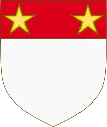- John St John, 1st Baron St John (d. 1329) - His arms and name were recorded as Argent, on a chief gules, two mullets or...Sire Johan de Sein Johan.[5]