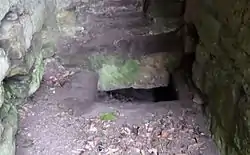 The old main entrance to the keep was at the east angle of the north side and later entered into a courtyard. The ground level is now considerably raised up and only the arch of the door can be seen.