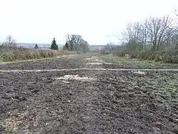 Ordnance Survey (OS) maps show that a sandstone quarry was located at Causewayfoot, overlooked by the old but now demolished dwelling at Selsy, with cottages and the farm of Causewayfoot standing nearby. A small ironstone pit was also present. The OS 6 in. of 1897, 1911, 1938 show a trapezoidal curling pond south-west of Kilbirnie Castle and records show that a match was played between Kilbirnie v. Dalry 3 rinks each, on 20 February 1895.[33] The curling pond built below the Causewayfoot is now drained and overgrown, shown as already abandoned in 1938. A lozenge-shaped curling pond at Fudstone south-west of the dwelling is shown on OS 6 in. 1st ed. ca. 1860, 1897 and 1911.[33]