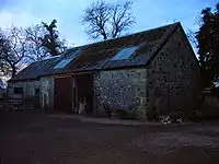 In 1828, Alexander Ferguson Reid inherited the estate, he was known as the "Ayrshire Genius" and was an inventor and collector of antiquities, as well as geological and natural history specimens. Reid dug into this Druidical Mound or Moot Hill several times and found nothing to help explain its age or purpose.[3] Most maps do not show the ice house which lies to the east of the driveway and some confusion in the descriptions may have arisen from misidentification of the ice house, limekiln and the Hutt Knowe. In the grounds of the present farm are curved ditches which are shown to have held water, either as ornamental ponds or for some practical purpose now unknown. The site had an apple orchard within the last 50 years or so, for John Hastings remembers raiding it.[10]