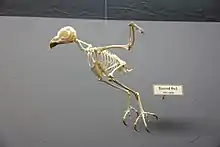 The barred owl is roughly intermediate in size between the larger Ural and the smaller tawny owl, but the structural features of its relatively short and decurved claws more so resemble the tawny species as does their dietary and habitat ecology.[8] The spotted owl has been hypothesized to be within a superspecies with the barred owl.[13] However, genetic testing reveals very early divergence (likely at or near their ancestor's entry to North America) between spotted and barred owls.[14] A fossil species once called Strix brea from the early Pleistocene in California does little to resolve the ancestry of modern species, given its ambiguous relation to any living Strix. The fossil species was larger (more similar in size and slenderness to the spotted owl, albeit with a slightly smaller skull and geographically isolated from that species) and longer-legged than either the spotted and barred owls, and is now considered to be in a separate genus, Oraristrix.[15][16] Pleistocene era fossils of probable barred owls are known from Florida, Tennessee and Ontario.[17][18][19]