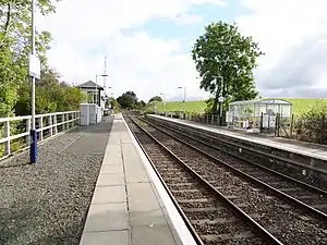 Barrhill railway station is a railway station serving the village of Barrhill, South Ayrshire, Scotland. The station is managed by Abellio ScotRail and is on the Ayr to Stranraer section of the Glasgow South Western Line, 74 miles (119 km) south of Glasgow Central. A passing loop 19 chains (380 m) long is located here on what is otherwise a single track route.
