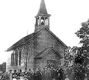 In 1860, about 18 immigrant families of Czech ancestry settled along the east side of the Fox River, near the future site of Fox River Grove. In 1867, land was purchased at the southwest corner of Church and River - Algonquin roads, and construction was started on St. John Nepomucene Chapel, named after the patron saint of Bohemia. Completed in 1873, the chapel was never served by its own priest, and currently services are scheduled only once a year. The chapel and its cemetery are owned by the St. John Nepomucene Catholic Cemetery Association, making it the only privately owned Catholic chapel and cemetery in the Rockford Diocese.[7][8]