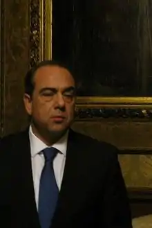 Kyprianou was followed by Franco Frattini on 23 April 2008 following elections in Italy when he was recalled to serve as foreign minister of Italy. Frattini's responsibilities were handed to Barrot (who held them in addition to his existing transport duties) until a replacement for Frattini could be found.[28] In light of Parliament's opposition in 2004 when Buttiglione was deemed inappropriate for the justice portfolio, when Antonio Tajani MEP (another right wing candidate) was put forward to replace Frattini, president Barroso handed him Barrot's transport portfolio, leaving Barrot to continue with the justice portfolio for continuity and to ensure Parliament would back Tajani in such as non-sensitive position as Transport (but one still of interest to Italy due to problems with Alitalia).[29] Parliament approved Tajani on 18 June 2008 with a vote of 507 to 53 (64 abstentions).[30] Peter Mandelson then left in October 2008 to return to national politics as Secretary of State for Business, Enterprise and Regulatory Reform, being replaced by Baroness Ashton.[31] Following the 2009 election two commissioners stood down to accept seats in the European Parliament: Danuta Hübner (Poland) and Louis Michel (Belgium) who were replaced by Paweł Samecki (4 July) and Karel De Gucht (17 July) respectively. Dalia Grybauskaitė (Lithuania) was replaced by Algirdas Šemeta on 1 July 2009) after becoming President of Lithuania.[32] Ján Figeľ (Slovakia) was replaced by Maroš Šefčovič on 1 October 2009 after being elected leader of the Christian Democratic Movement on 21 September 2009.