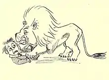 In 1896, Belloc approached Blackwood to illustrate his book of humorous children's verse, The Bad Child's Book of Beasts.[3] Blackwood's amusing pen and ink sketches were in a style which has been described as "German expressionism",[4]:123 and were credited only to "B.T.B.". The book was an immediate success. Blackwood went on to illustrate several more of Belloc's books, including: The Modern Traveller (1898), A Moral Alphabet (1899), More Peers (1900), Cautionary Tales for Children (1907) and More Beasts for Worse Children (1910).[5] In the rhyming introduction to the Cautionary Tales, Belloc describes Blackwood's drawings as "...the nicest things you ever saw". Some critics claim that there is anti-Semitism in Blackwood's drawings.[4]:124