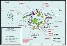Basilan, officially the Province of Basilan (Chavacano: Provincia de Basilan; Tausug: Wilaya' sin Basilan; Yakan: Wilayah Basilanin; Tagalog: Lalawigan ng Basilan) is an island province of the Philippines in the Bangsamoro Autonomous Region. Basilan Island is the largest and northernmost of the major islands of the Sulu Archipelago. It is just off the southern coast of the geographic Zamboanga Peninsula.[4][1]