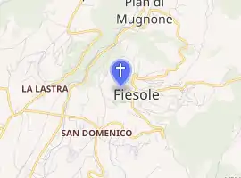 Sant'Alessandro was built on the site of an Etruscan temple,[1] near the top of the highest point in Fiesole. It was likely commissioned by King Theodoric the Great in the 6th century,[2] making it the oldest church in Fiesole.[1] The church was originally named Santo Pietro in Gerusalemme (Saint Peter in Jerusalem), until the year 823,[2] when it was renamed for Saint Alessandro, a former Bishop of Fiesole, who was martyred in the River Reno near Bologna in AD 590. Alessandro's remains were returned to Fiesole, where they were interred behind the altar of the church.[1]