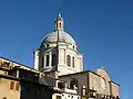The Basilica of Sant'Andrea is a Roman Catholic co-cathedral and minor basilica in Mantua, Lombardy (Italy). It is one of the major works of 15th-century Renaissance architecture in Northern Italy. Commissioned by Ludovico III Gonzaga, the church was begun in 1472 according to designs by Leon Battista Alberti on a site occupied by a Benedictine monastery, of which the bell tower (1414) remains. The building, however, was only finished 328 years later. Though later changes and expansions altered Alberti's design, the church is still considered to be one of Alberti's most complete works. It looms over the Piazza Mantegna.