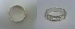 Other cultures have also used ring rosaries, especially in cases of religious persecutions against Catholics. These rosaries are small and can be easily hidden. An example is the Irish penal rosary also with 10 beads. However, they were also sometimes worn for protection and adornment at times when Catholicism was not persecuted, as it would be more difficult to break or wear down a rosary ring, rather than a traditional rosary threaded onto a string.[1]
