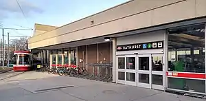 Bathurst is a subway station on Line 2 Bloor–Danforth in Toronto, Ontario, Canada. The station, which opened in 1966, is located on Bathurst Street just north of Bloor Street West. It is a major transfer point for both bus and streetcar routes, including the 511 Bathurst route, which provides services to Exhibition Place.