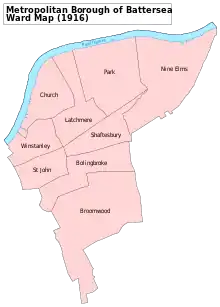 1918–1950: The Metropolitan Borough of Battersea wards of Bolingbroke, Broomwood, St John, Shaftesbury, and Winstanley.