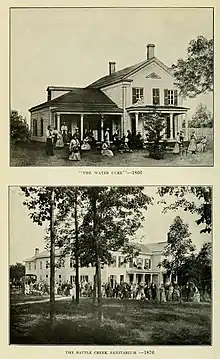 The Battle Creek Sanitarium was a world-renowned health resort in Battle Creek, Michigan, United States.[3] It started in 1866 on health principles advocated by the Seventh-day Adventist Church and from 1876 to 1943 was managed by Dr. John Harvey Kellogg.[4]