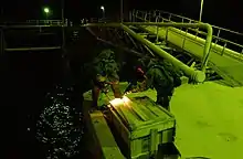 Another important objective on the al-Faw peninsula was the Iraqi oil infrastructure, coalition analysis of the major Iraqi southern oilfields, the routes of the pipelines and locations of the pumping-stations revealed that they all culminated in the al-Faw peninsula where 90% of Iraq's oil was exported through the peninsula via two gas and oil platforms just a few miles off the al-faw coast.[5]