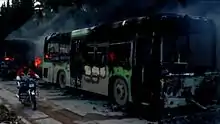 By 13 December 2016, only 5% of the original territory of the city remained in rebel hands.[227] A ceasefire was announced and the fighting stopped in order to allow the evacuation of civilians and rebels. The buses were prepared for the evacuation. However, the deal fell apart the next day, when the Syrian Government resumed their intense bombing of eastern Aleppo, with both sides blaming the other for the resumed fighting.[228]
