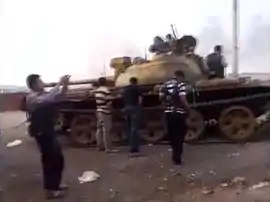 ![]() Rebel fighters with a captured Syrian Army T-55 at the Anadan checkpoint during the battle | |||||||