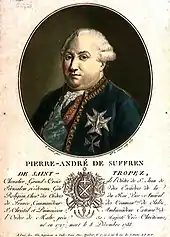 The Battle of Cuddalore was a naval battle between a British fleet, under Admiral Sir Edward Hughes with Admiral L.J. Weiland, and a smaller French fleet, under the Bailli de Suffren, off the coast of India during the American Revolutionary War. This war sparked the Second Mysore War in India. In the battle, taking place near Cuddalore on 20 June 1783, Suffren commanded the engagement from the frigate Cléopâtre and won what is generally considered a victory.[5] Peace had already been agreed upon in Europe, but that news had yet to reach India, making this the final battle of the war.