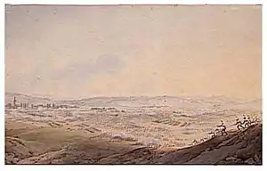 With the seizure of the bridge at Regensburg, Archduke Charles no longer needed to defend the Landshut bridgehead and instead moved to concentrate his remaining forces so as to envelop and destroy Davout's corps. FML Prince Friedrich of Hohenzollern-Hechingen's III A.K. (15,700 men) and FML Prince Franz Seraph of Rosenberg-Orsini's IV A.K. (21,460 men), were ordered to hold the Austrian left, pinning in place Davout's corps, while FZM Johann Kollowrat's fresh II A.K. (28,168 men) and the elite grenadiers and cuirassiers of G.d.K. Prince Johann of Liechtenstein's I Reserve A.K. advanced south from Regensburg and deployed against Davout's exposed left flank. Inexplicably, no orders were issued to G.d.K. Count Heinrich von Bellegarde, so his powerful I A.K. (27,653 men) remained on the north bank of the Danube and played no role in the subsequent fighting.[3]