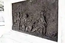 The Battle was also notable for being the first and last battle of the volunteer Hollanderkorps. The Hollanderkorps was a group of ca. 150 Dutch volunteers which had been established a mere month earlier. During the battle the Hollanderkorps suffered 9 fatalities, including Herman Coster, along with fellow officer Cars Geerts de Jonge and seven soldiers: P.J. van den Broek, H. van Cittert, J.A. Lepeltak Kieft, Jan Moora, J.Th. Rummeling, M. Schaink, and F.W. Wagner. A further 35 of the Hollanders were taken prisoner by the British.[11] Among the prisoners was Willem Frederik Mondriaan (brother of the Dutch artist Piet Mondrian) who was wounded in the battle. Although he was able to crawl away from the battlefield he was taken prisoner by the British shortly after. He was later sent to Saint Helena as a prisoner of war, returning to South Africa in 1903.[12] Cornelis Vincent 'Cor' van Gogh, the brother of the Dutch artist Vincent van Gogh, also fought in the battle[11] where he was wounded and taken prisoner. He died shortly after. The Boer generals were deeply unhappy with the Hollanderkorps' performance, and it was disbanded after the battle though several hundred Dutch volunteers continued to fight in Boer regiments.[11] The names of the deceased Hollanders, including Coster, were inscribed at a monument at the location of the battle. The monument was destroyed by vandals in 2014.[13]
