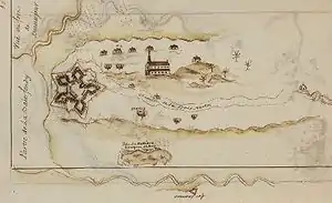 In 1750, the Governor of New France Jacques-Pierre de la Jonquière heard that the English were building a fort in the region of Acadia. This fort later became Fort Lawrence. In response, the French decided to build Fort Beauséjour.[15] The building of the fort began in 1751 and the plans created by a military engineer named Jacau de Fiedmont, who became a lieutenant in 1752. Fiedmont was responsible for the construction of the fort as well as for the plans of its defence.[16] The fort was supposed to be strong enough to withstand bombardment, but Fort Beauséjour was not completely finished in 1755, for multiple reasons. To begin with, the fort's priest Abbé Le Loutre decided to reallocate manpower to an irrigation project.[17] Also, Louis du Chambon de Vergor, the military commander at Fort Beauséjour in 1754, was more concerned with keeping the money for himself and was therefore not putting the resources to use strengthening the defences of Fort Beauséjour.[16] Jacau de Fiedmont's journal, The Siege of Beauséjour in 1755: A Journal of the Attack on Beauséjour, puts emphasis on the point that if the fortifications would have been completed by the beginning of the siege, the Fort would have had higher resistance against bombardment which would have increased the morale of the French and Acadian defenders. Fiedmont continually insisted on working on the defences because of the fort's weaknesses, yet this work was never completed.