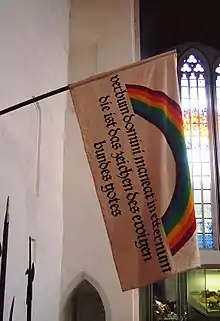 At Frankenhausen, the battle is depicted, along with many other scenes of that age, on the world's largest oil painting, Werner Tübke's Early Bourgeois Revolution in Germany (Frühbürgerliche Revolution in Deutschland), which is 400 feet (120m) long, 45 feet (14m) high, and housed in its own specially built museum.[6] The painting was ordered by the socialist leadership of East Germany, who regarded Müntzer as a revolutionary and thus as one of their forebears; work on it went on between 1975 and 1987.[6] However Tübke did not solely focus on the battle, contrary to the state's wishes, but placed the events at Frankenhausen in a much wider social, political and cultural context prevalent in Reformation Germany at the time.