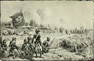On the day before the battle, the advance of the British army was visible miles from Killala – as it was marked by smoke from houses and cabins burned along the route.[3] Prior to the battle, Rebels and refugees began pouring into Killala – especially from the direction of Ballina. The morning was marked by heavy rainfall, but this cleared before noon.[4] The French present at the battle included 4 officers only – Charoust, Boudet, Ponson and Truc. Truc had arrived on the morning of the battle from Ballina.[4]