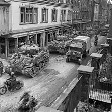 On the right flank of the First Army south of Bonn, the 9th Armored Division moved swiftly, and the closer they got to the Rhine, the more quickly they advanced. The speed of their movement towards the Rhine surprised the Germans.[33][34][35]