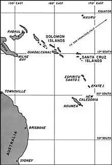 On 7 August 1942, Allied forces, consisting primarily of U.S. troops, landed on Guadalcanal, Tulagi, and the Florida Islands in the Solomon Islands. The landings on the islands were meant to deny their use by the Japanese as bases for threatening the supply routes between the U.S. and Australia, and to secure the islands as starting points for a campaign with the eventual goal of isolating the major Japanese base at Rabaul while also supporting the Allied New Guinea campaign. The landings initiated the six-month-long Guadalcanal campaign.[6]