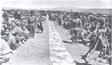 The Russian Caucasus Army numbered a well-equipped 100,000 troops.[9] However, the Russians redeployed almost half of the Caucasus Army to the Prussian front due to the defeats at the Battle of Tannenberg (August 23 – September 2, 1914) and the Masurian Lakes (September 9–14, 1914), leaving behind 60,000[1][2][3]-65,000 troops.[6] To remedy these troop movements Count Illarion Ivanovich Vorontsov-Dashkov consulted with the Mayor of Tbilisi Alexandre Khatsian, the primate of Tbilisi Bishop Mesrop, and the prominent civic leader Dr. Hakob Zavriev about the creation of Armenian volunteer detachments.[18] The Russian Armenian reservists had already been drafted into the regular armed forces and sent to the European theatre.[18] The volunteer units consisted of Armenians, who were not citizens of the empire or obligated to serve.[18] However, many other, non-Russian communities were also represented in the Russian Caucasus Army as volunteers, conscripts, and regular soldiers and officers. These particularly included men who belonged to Christian Orthodox communities settled in the surrounding Kars Oblast since 1878, such as Georgians and Caucasus Greeks, who generally saw service in the Russian imperial army as a means of achieving their own communities' ambitions to recapture Greek Orthodox territory from the Muslim Ottomans on the back of the Russian imperial enterprise.