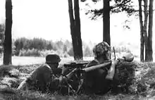 In addition to Tali-Ihantala, the Finnish front line held fast at Kivisilta and Tienhaara to the north of Vyborg Bay.[48][49] There was further heavy fighting on the northeast side of Lake Ladoga, and in the Battle of Ilomantsi the Finns were able to encircle two Soviet divisions, though most of the troops were able to escape.[50][51]