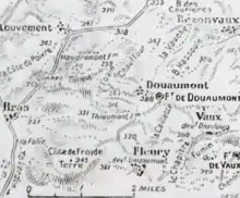The Haudromont quarries, Ouvrage de Thiaumont and Thiaumont Farm, Douaumont village, the northern end of Caillette Wood, Vaux pond, the eastern fringe of Bois Fumin and the Damloup battery were captured.[79] The heaviest French artillery bombarded Fort Vaux for the next week and on 2 November, the Germans evacuated the fort, after a huge explosion caused by a 220 mm shell. French eavesdroppers overheard a German wireless message announcing the departure and a French infantry company entered the fort without firing a shot; on 5 November, the French reached the front line of 24 February and offensive operations ceased until December.[80]