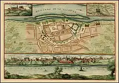 Nieroth arrived at Warsaw just before 11 July and opened the parliamentary session according to schedule.[12] He established camp just south of the city next to the Vistula River.[13] Meanwhile, the Saxons who had been forced out of Kraków and back to Brest departed for Warsaw in early July. They united banners with between 5,000[14] and 6,000 Poles and Lithuanians,[15] led by Stanisław Chomętowski and Janusz Antoni Wiśniowiecki. The overall command of the force was assigned to Otto Arnold von Paykull whose orders from Augustus II were to disrupt the parliamentary session. Paykull's vanguard, under the command of Adam Śmigielski, soon arrived in the vicinity of Praga, on the opposite side of the Vistula from Warsaw, and attempted to cross the river on several occasions.[8]