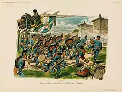 The battle saw the unsupported division of General Douay of I Corps, with some attached cavalry, which was posted to watch the border, attacked in overwhelming but un-coordinated fashion by the German 3rd Army. [8][9] During the day, elements of a Bavarian and two Prussian corps became engaged and were aided by Prussian artillery, which blasted holes in the defenses of the town. Douay held a very strong position initially, thanks to the accurate long-range fire of the Chassepots but his force was too thinly stretched to hold it. Douay was killed in the late morning when a caisson of the divisional mitrailleuse battery exploded near him; the encirclement of the town by the Prussians threatened the French avenue of retreat.[10]