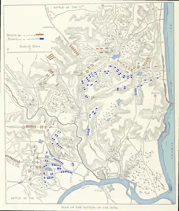 The Battles of the Nive (9–13 December 1813) were fought towards the end of the Peninsular War. Arthur Wellesley, Marquess of Wellington's Anglo-Portuguese and Spanish army defeated Marshal Nicolas Soult's French army on French soil in a series of battles near the city of Bayonne.