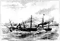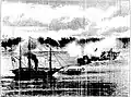 The Jequitinhonha (left) trapped on a sandbar during the Battle of Riachuelo.