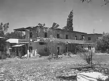 On the same day, Syrian aircraft bombed the Israeli village Kinneret and the regional school Beit Yerah, on the southwestern shore of the Sea of Galilee. By evening, Samakh (Tzemah) had fallen and a new Israeli defensive line was set up in the Deganias, facing the Syrian counterparts.[1] At night, a Palmach company from Yiftach's 3rd Battalion attempted to recapture Samakh's police station. They stealthily reached the school next to the station, but the assault on the actual fort was warded off.[26] On the morning of May 19, a message was sent from Sha'ar HaGolan and Masada that they were preparing for an evacuation, although when the order was given to stay put, the villages had already been abandoned, mostly to Afikim.[1] In the morning, when the villagers carried out an order to return to their positions, local Arabs were already present at the location.[26] The Syrian troops then captured the villages without a fight,[24] and proceeded to loot and destroy them.[27] Aharon Israeli wrote that an order was given not to disclose the flight of Masada and Sha'ar HaGolan's residents, but this became clear as fire and smoke rose from the villages, and hurt the morale of the Israelis making defensive preparations in the Deganias.[28]
