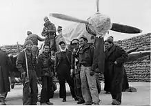 The Israeli task force set out into the Sinai at 14:00 on December 28.[8] This was the first time that many of the soldiers, including Yitzhak Rabin, visited another country. The force consisted, in the order of movement, of the Negev Brigade's 9th Battalion and staff, the 82nd Battalion of the 8th Brigade, and the Negev's 7th Infantry Battalion. Israeli aircraft mistakenly attacked them, killing one soldier and injuring another, until a flag resembling the Israeli (a military flag from the Jewish Brigade) was flown.[7]
