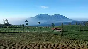 The city of Batu lies on the slopes of several mountains. The most prominent are Mount Anjasmoro (2,277 m), Mount Arjuno (3,339 m), Mount Welirang (3,156 m), Mount Banyak (1,306 m), Mount Kawi (2,551 m), Mount Panderman (2,045 m), Mount Semeru (3.676 m), and Mount Wukir (335 m).[5]