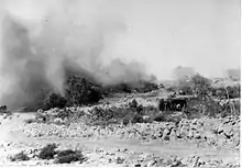 The village was depopulated between 19–24 October 1948, after the Harel Brigade captured the village as part of Operation Ha-Har.[32] This operation was complementary to Operation Yoav, a simultaneous offensive on the southern front.[5] Most of the village population fled southwards, towards Bethlehem and Hebron.[32] Many refugees from Bayt 'Itab, and other Palestinian villages clustered together on the western slope of the Judean mountains, ended up in Dheisheh refugee camp in the West Bank, roughly 15 kilometres (9.3 mi) from their former homes.[33] One IDF account says that when the Harel Brigade approached the village at night, they already found the village deserted, but proceeded to destroy its houses.[34]