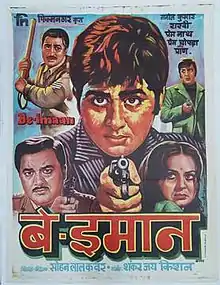 Be-Imaan (lit. 'Dishonest') is a 1972 film directed by Sohanlal Kanwar. The film stars Manoj Kumar, Raakhee, Premnath, Pran, Prem Chopra and Tun Tun. The music is by Shankar Jaikishan. The film was remade in Tamil as En Magan with Sivaji Ganesan.