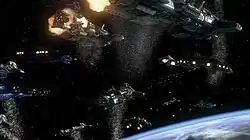 ![]() Towards the end of the battle, every Replicator cell is pulled from the Asuran ships down to the planet | |