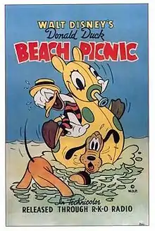 Beach Picnic is a 1939 Donald Duck animated short film which was originally released on June 9, 1939, featuring Donald Duck and Pluto and produced by Walt Disney Productions in Technicolor and distributed by RKO Radio Pictures.[1] This cartoon featured Donald at the beach. It was the first Donald Duck series to feature Pluto (although he had previously appeared only paired with Donald in Donald and Pluto).