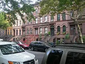 The Stuyvesant Heights Historic District in Bedford-Stuyvesant comprises 577 contributing residential buildings built between about 1870 and 1900. The district encompasses 17 individual blocks (13 identified in 1975 and four new in 1996). The buildings within the district primarily comprise two- and three-storey rowhouses with high basements, with a few multiple dwellings and institutional structures. The district includes the Our Lady of Victory Catholic Church, the Romanesque Revival style Mount Lebanon Baptist Church, and St. Phillip's Episcopal Church.[52][53] It was listed on the National Register of Historic Places in 1975 and expanded in 1996.[51] Bedford Stuyvesant/Expanded Stuyvesant Heights Historic District was designated on April 16, 2013 and extended the district north to Jefferson Ave, east to Malcolm X Blvd, and west to Tompkins Avenue.[47]