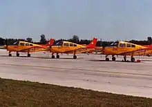 In the early 1960s the Royal Canadian Air Force’s standard elementary training aircraft was the de Havilland DHC-1 Chipmunk. Flight instruction was completed by student pilots on the DHC-1 before they progressed to the then-brand-new Canadair CT-114 Tutor jet trainer. A decision was made by RCAF HQ to remove the DHC-1s from service and not replace them, as it was felt that the CT-114 was easy enough to fly that initial training was not needed. The CT-114 quickly developed a wash-out rate of near 95% amongst student jet pilots and it was clear that an elementary trainer was needed. Due to the RCAF's previous customer relationship with Beechcraft while operating that company's Expeditor twin-engine aircraft, a hasty purchase of twenty-four B23 Musketeers was made in 1971.[1] The first CT-134 arrived at CFB Portage la Prairie on March 23, 1971.[2]