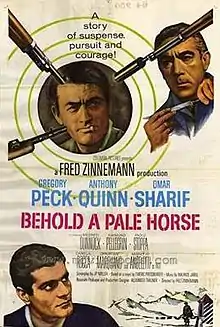 Behold a Pale Horse is a 1964 American drama war film directed by Fred Zinnemann and starring Gregory Peck, Omar Sharif and Anthony Quinn. The film is based on the novel Killing a Mouse on Sunday by Emeric Pressburger, which loosely details the life of the Spanish anarchist guerrilla Francesc Sabaté Llopart.