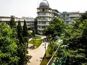 The old principal's office (老校长室) is built in the style of ancient Chinese architectures. The 6-floor Technology Building has laboratories for chemistry, physics, biology, and computer sciences. On the sixth floor, there is an observatory for astronomy clubs. The Administration Building, built in 2007, has offices for teachers and staff and conference or meeting rooms, as well as a cafeteria and an auditorium. A build for music and art classes, a small clinic and dormitories can also be found on campus. The library holds roughly 170,000 books, 400 types of journals and magazines, 40 newspaper collections, 8000 optical discs and 2000 recording tapes.[13]