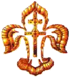 The membership badge of the Belaruskaya Natsianalnaya Skautskaya Asatsiyatsia incorporates the Patriarchal cross of Eastern European iconography.