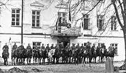 Belarusian housars in front of the house of Tribunal in Hrodna (1919)