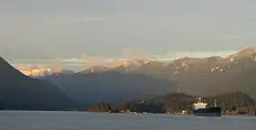 ![]() Belcarra Regional Park from Westridge Terminal. Eagle Ridge in the background, with part of Mamquam Mountain, which lies east of Squamish, visible at left rear. | |